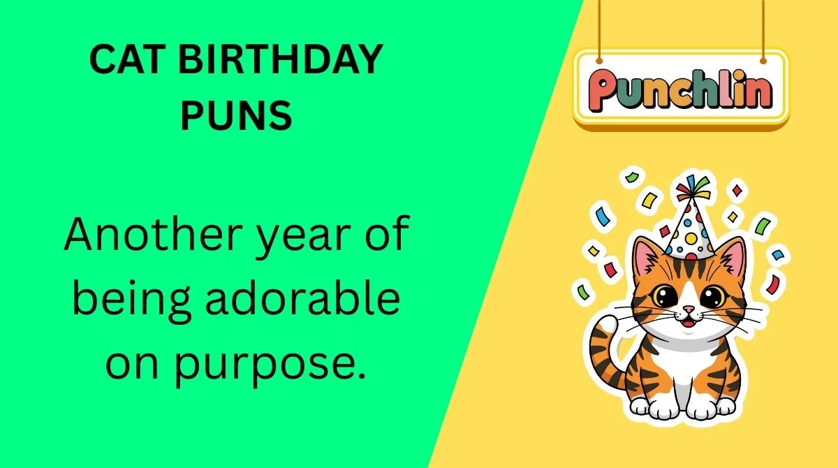 Cat birthday puns are funny wordplay jokes mixed with cat themes perfect for parties or captions.